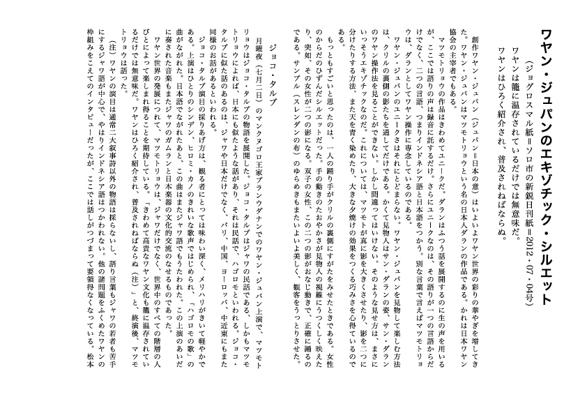 日本ワヤン協会 東京都世田谷区上北沢4-30-10-707 tel&fax 03-3303-6063 E-mai: banuwati@kt.rim.or.jp